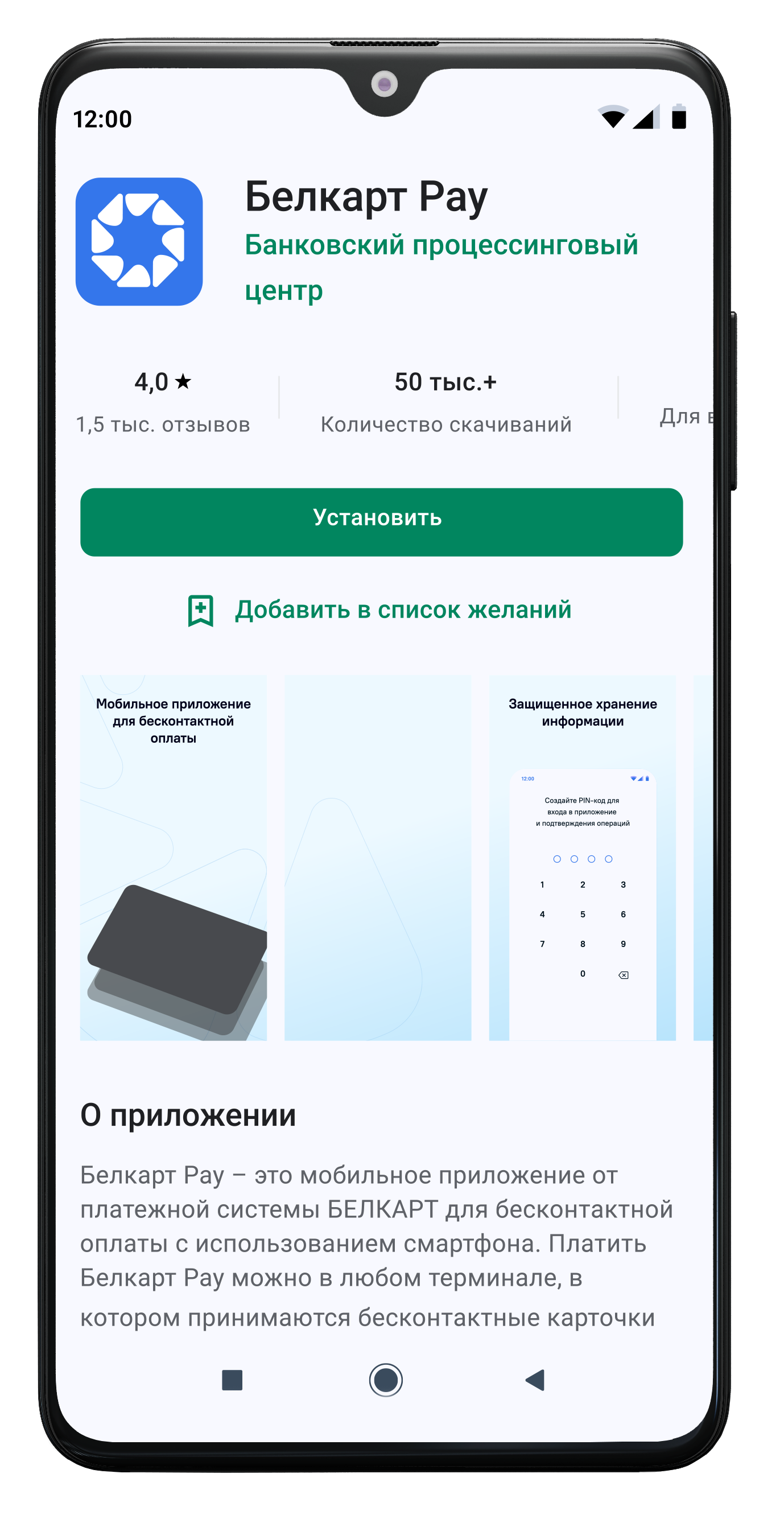 Установите приложение Белкарт Pay в Google Play / AppGallery